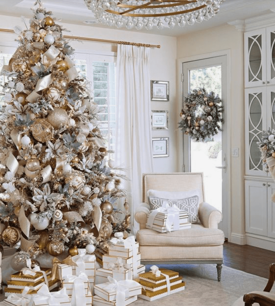 El árbol es una pieza fundamental de este estilo, decorado con adornos blancos, plateados e incluso con piezas de cristal. El lujo de la navidad al estilo más contemporáneo.