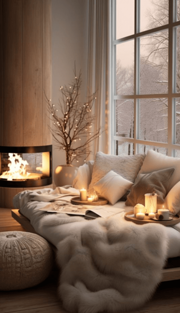 En caso de que no tengas chimenea en casa, puedes disponer de un espacio pequeño en donde puedas ambientar un par de muebles, una mesa auxiliar y velas. Esto ayudará a mantener el lugar caliente y sobre todo, será un lugar íntimo donde te podrás sentar con tranquilidad a tomar un chocolate caliente por la mañana.