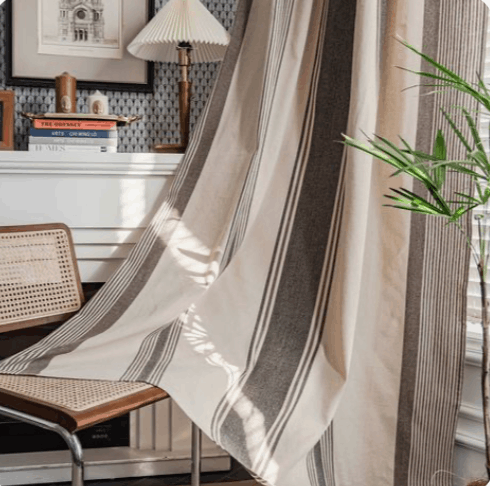 En el salón , unas cortinas con rayas verticales sutiles pueden ser justo lo que necesitas ara dar altura al espacio sin recargar. Si tu estilo es más atrevido, prueba con un par de cojines de rayas anchas en el sofá como punto focal.