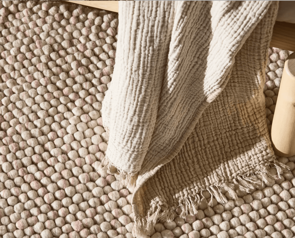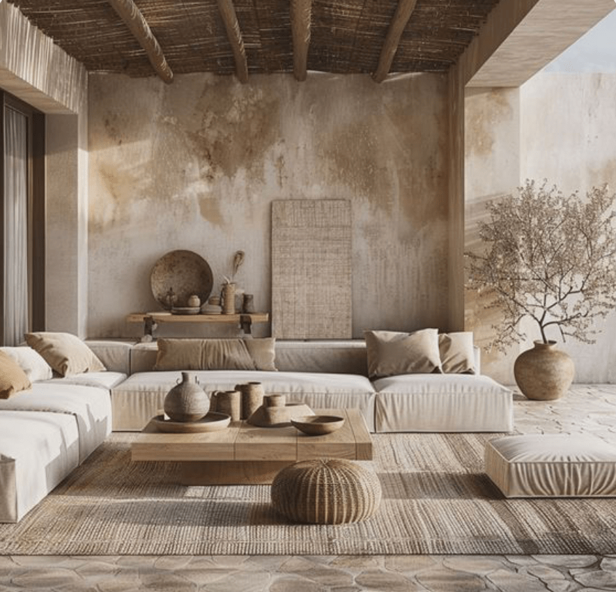 Apuesta por un suelo natural: Maderas, cemento o barro son materiales que te conectan con la naturaleza y cúbrelos con unas lanas maravillosas fibras y tejidos naturales que te conecten con la naturaleza y la calma que tu hogar necesita.
